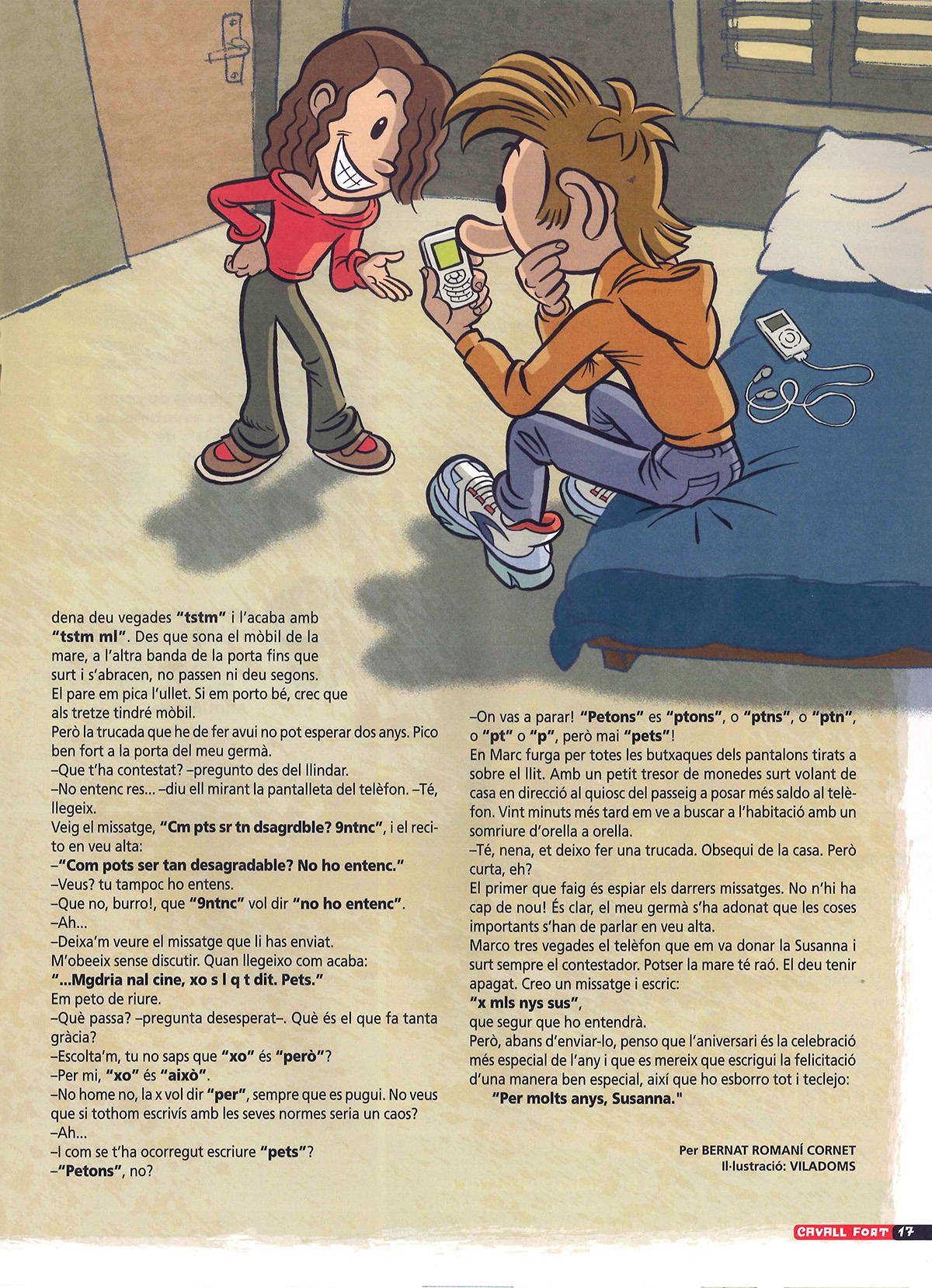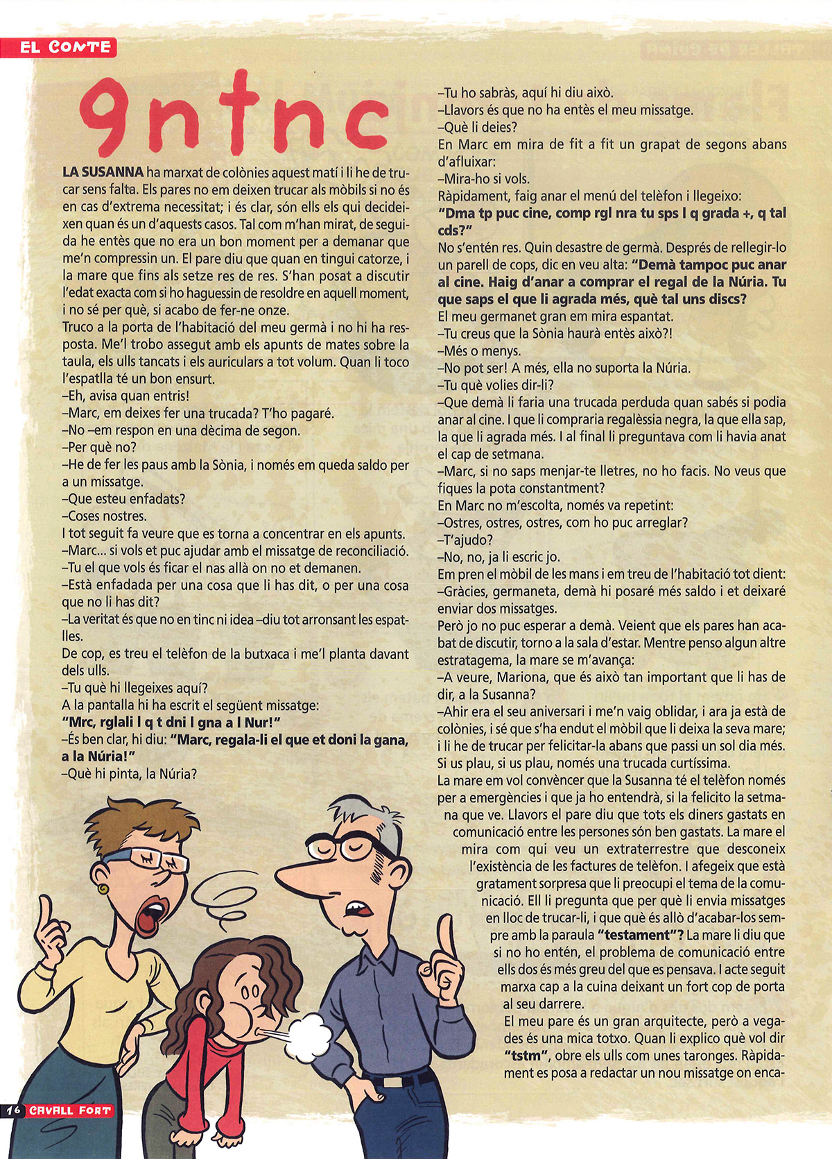9ntnc Bernat Romaní / Novembre 1, 2006 Conte publicat a la revista Cavall Fort en el número 1063 de la primera quinzena de novembre de 2006. Comparteix:Comparteix Email a link to a friend (S'obre en una nova finestra) Correu electrònic Comparteix al Facebook (S'obre en una nova finestra) Facebook Share on X (S'obre en una nova finestra) X M'agrada S'està carregant...