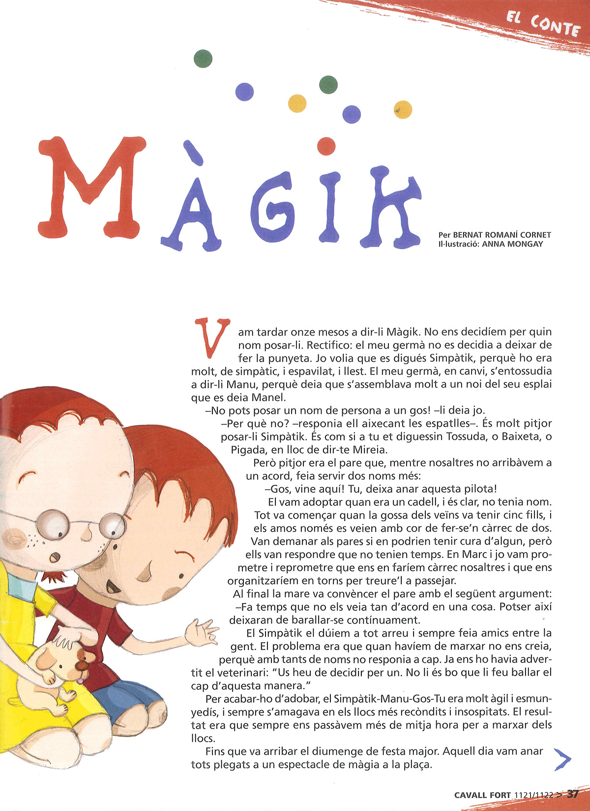 Màgik Bernat Romaní / Abril 1, 2009 Conte publicat a la revista Cavall Fort en el número 1121/1122 d’abril de 2009. Comparteix:Comparteix Email a link to a friend (S'obre en una nova finestra) Correu electrònic Comparteix al Facebook (S'obre en una nova finestra) Facebook Share on X (S'obre en una nova finestra) X M'agrada S'està carregant...