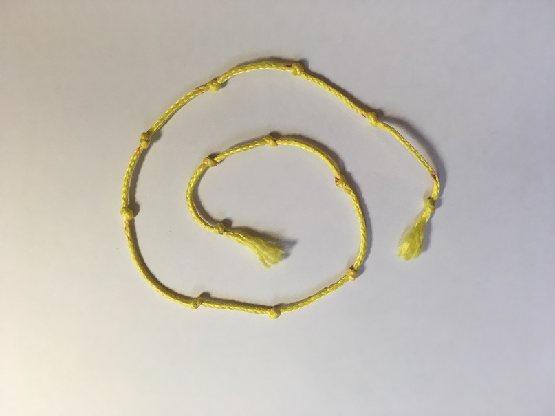El cordill de 13 nusos equiespaiats és un objecte que els faig fer a tots individualment. Entraria en activitats d’aula, però com que en porto un fet de casa, m’autoritzo a posar-ho en aquest recull.