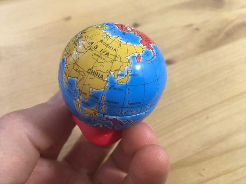 Sempre duc a sobre un mini globus terraqüi. El trec un mínim de dos cops l’any, per qualsevol explicació del sistema solar, per parlar de la definició del metre, per veure els fusos horaris… i el curs que ve per altres coses que ja se’ns acudiran. Cal dir que també és una maquineta de fer punta.