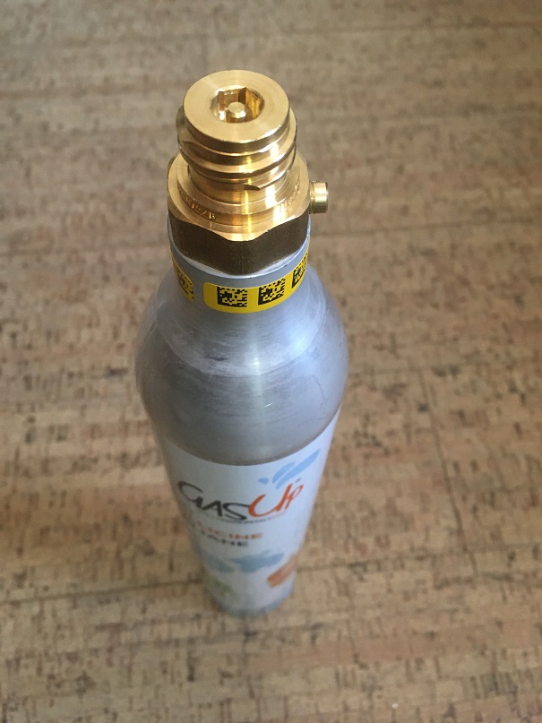 La bombona de gas de CO2 comprimit. A casa en tenim perquè fem aigua amb gas amb SodaStream©. Surt a compte a la llarga! En porto una gairebé buida però que encara té prou pressió. Premo la vàlvula i el soroll del gas quan surt fa callar a tots els alumnes. Tenim ensurt i un bon efecte sorpresa assegurats. La bombona permet diverses explicacions en l’àrea de la física: compressibilitat dels gasos, canvi d’estat….